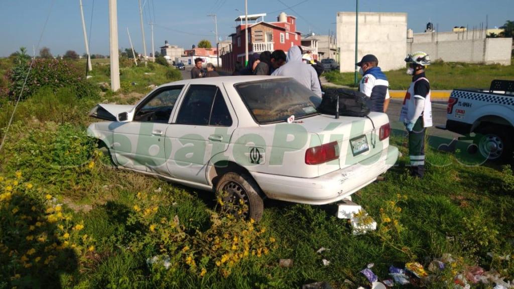 Staff Debate Público.- Una pareja que viajaba en un automóvil compacto, resultó con lesiones leves después de que volcara su unidad, sobre el bulevar Cuamanco en la ciudad de Huamantla.