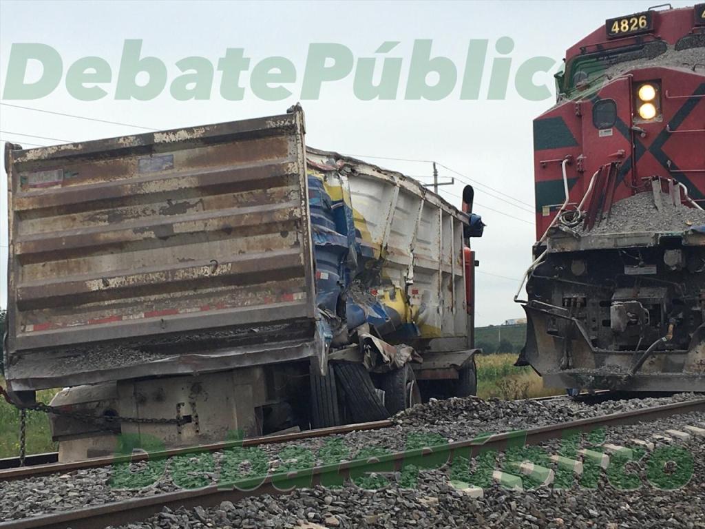 La unidad fue un tractocamion kenword enganchado a una góndola, que fue impactado en la parte de los ejes traseros, quedando atorado en los fierros de la máquina ferroviaria, por lo que acudió el servicio de grúas para retirar la unidad.
