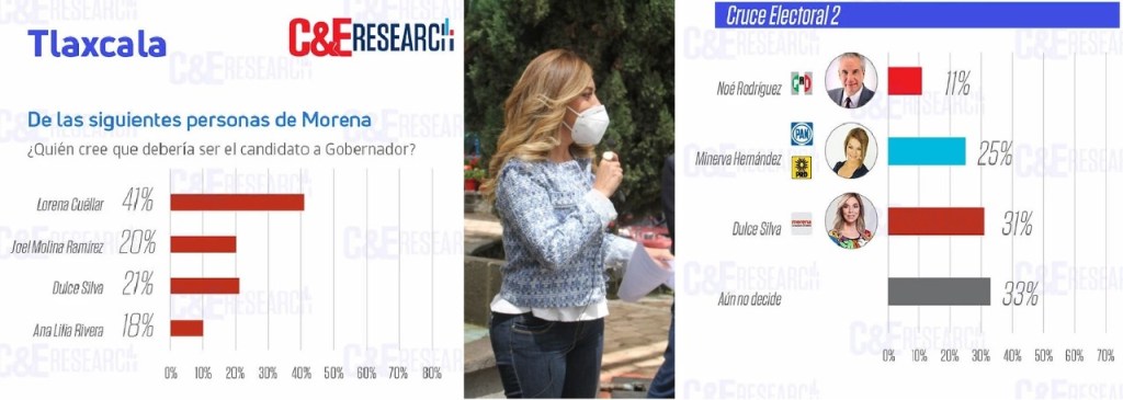 Pero, además, la empresaria originaria del Municipio de Huamantla, se coloca en primer lugar de las preferencias electorales con 31 por ciento por encima de la senadora panista, Minerva Hernández Ramos, y del priista Noé Rodríguez Roldan, si ellos fueran los candidatos a la gubernatura.