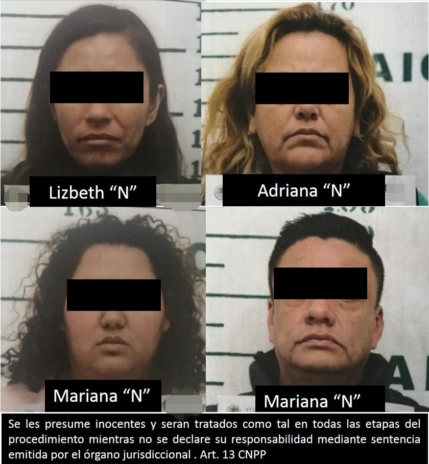 Por lo anterior, pusieron a disposición a Mariana “N”, Lizbeth “N”, Adriana “N” y Antonio “N” del Fiscal Federal, así como billetes falsos con la denominación de 500 pesos.