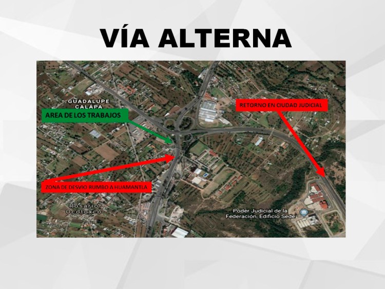 Por tal motivo, se sugiere a los automovilistas utilizar como vía alterna la carretera Amaxac-Apizaco, para posteriormente incorporarse en el retorno ubicado en Ciudad Judicial.