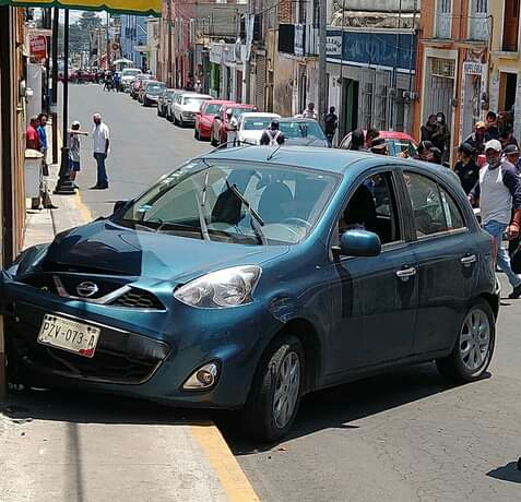 Se trato de un automóvil compacto Nissan modelo March, color azul, con placas de circulación PZV-073-A, que quedó sobre la acera de la calle Abasolo en sentido de oriente a poniente. De acuerdo a versiones de algunos testigos, la unidad circulaba a exceso de velocidad y perdió el control impactando a dos unidades que se encontraban estacionadas.