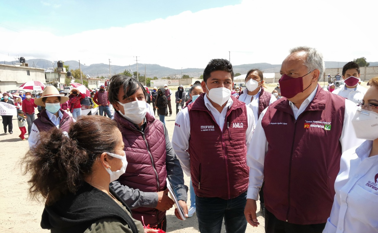 Acompañado del candidato a la diputación federal por el distrito 1, por la coalición Juntos Hacemos Historia, Alejandro Aguilar López, Giovanni Tapia realizó un toque de puertas para darle a conocer a los habitantes de Atltzayanca sus propuestas, para lograr la Cuarta Transformación en este Municipio.