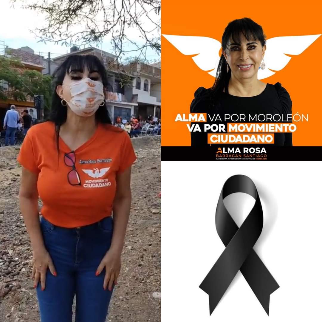 ManuelRojas.- Mientras hacia campaña, es asesinada Alma Barragán, candidata de Movimiento Ciudadano a la Presidencia Municipal de Moroleón. De acuerdo con testigos, hasta el lugar en el que se encontraba la candidata llegaron hombres armados, quienes abrieron fuego contra ella. En este hecho además dos personas más resultaron lesionadas.