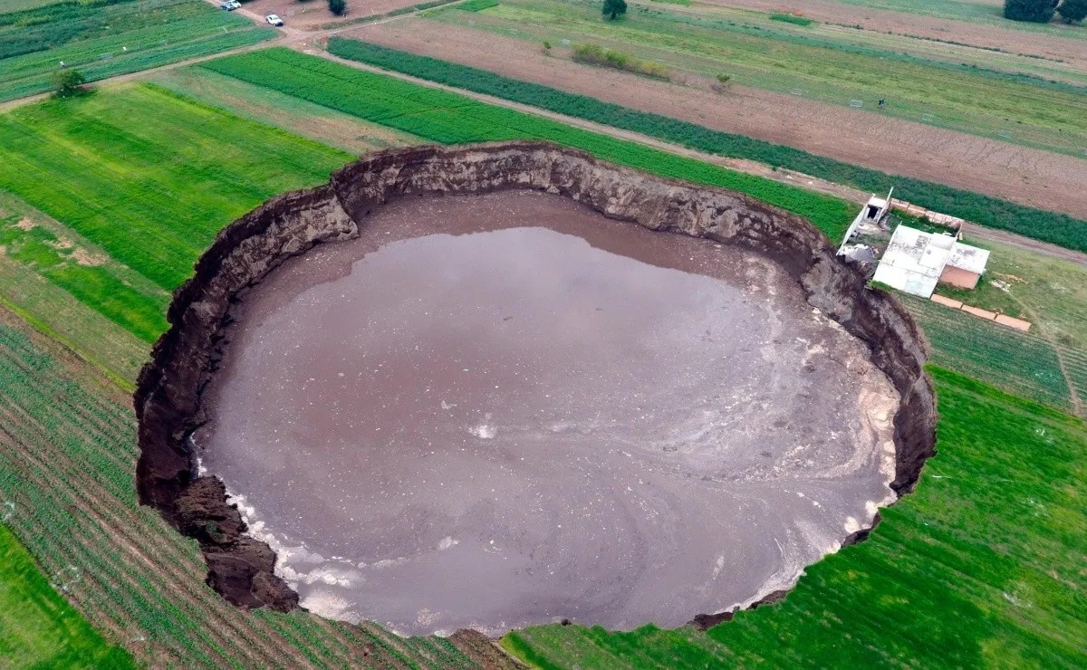DP.- El socavón que se encuentra en la comunidad Santa María Zacatepec, municipio de Juan C. Bonilla, Puebla, alcanzó este miércoles una medida de 126 metros de diámetro, reveló la titular de la Secretaría de Gobernación, Ana Lucia Hill Mayoral.