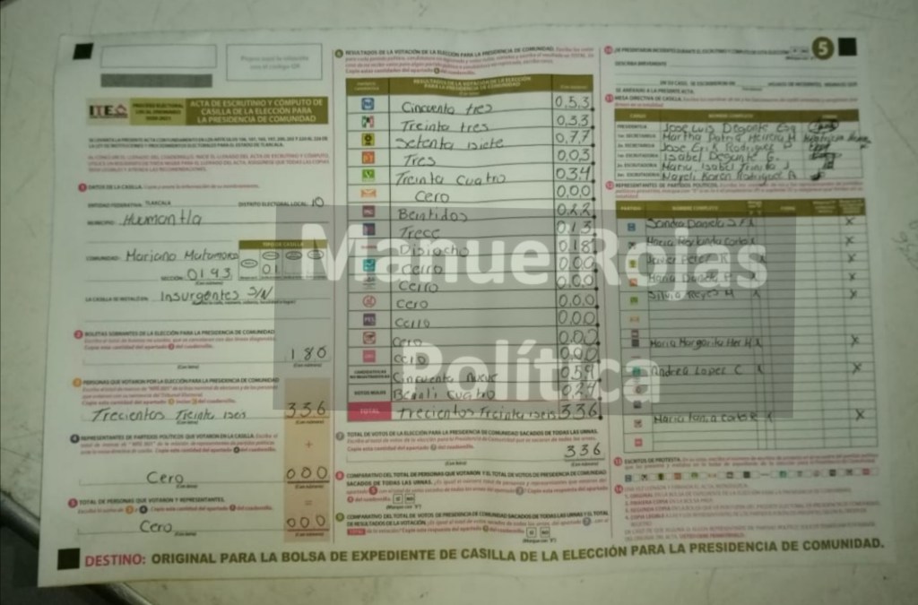 En un hecho inédito, la ciudadanía voto por Jose Marcelino Hernández Pérez, quién según los pobladores es considerado como un candidato no registrado, y aunque reconocen que los candidatos de los partidos políticos tradicionales tuvieron votos, la mayoría decidió por una persona que no pertenece a ningún instituto político porque, dijeron, ya están cansados de los malos resultados.