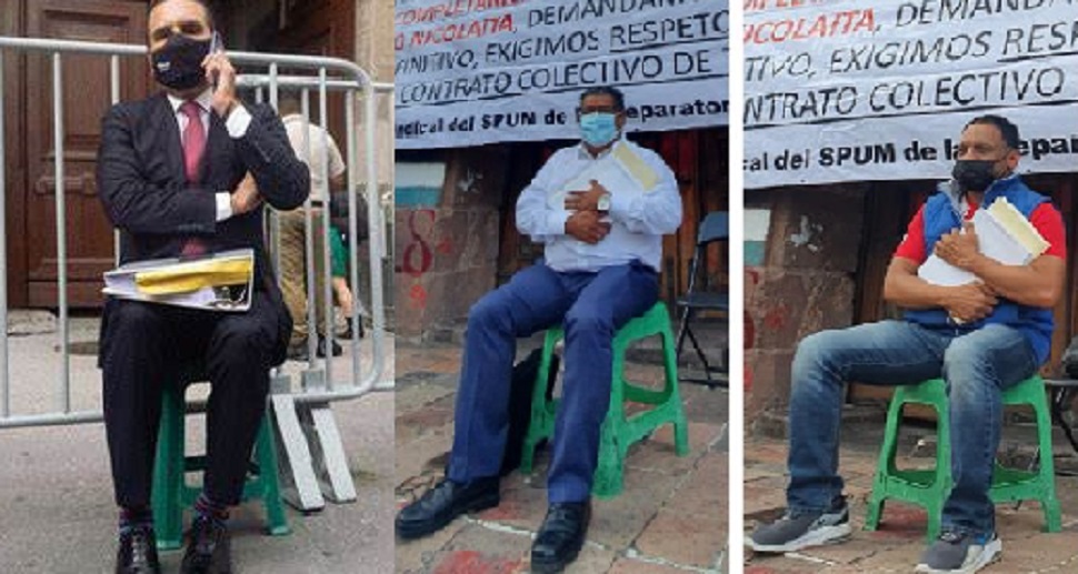 Los maestros forman parte del Sindicato de Profesores de la Universidad Michoacana (SPUM), quienes recrearon la protesta del gobernador del estado, Silvano Aureoles Conejo, en las afueras de Palacio Nacional, a donde acudió a esperar a una audiencia con el presidente del país, Andrés Manuel López Obrador, para presentarle las pruebas que, aseguró, comprueban que el narco estuvo involucrado en las elecciones en Michoacán.
