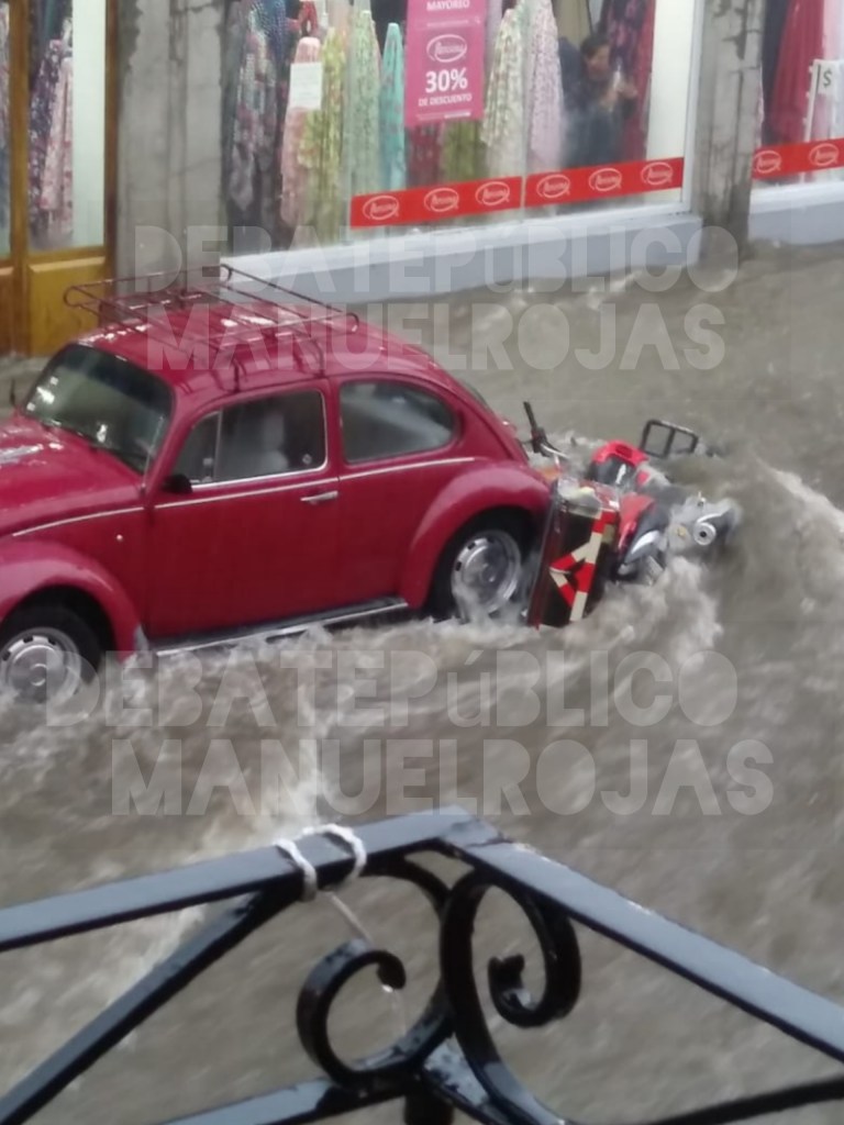 Pero los estragos de lo que especialistas consideran como lluvias atípicas, se pudieron observar en distintas zonas del municipio de Huamantla, aunque fue más evidente en el centro histórico, donde algunos vehículos fueron arrastrados por el agua que bajaba por la avenida Hidalgo, calle Zaragoza, Morelos y Abasolo, causando que algunos comercios se inundarán.
