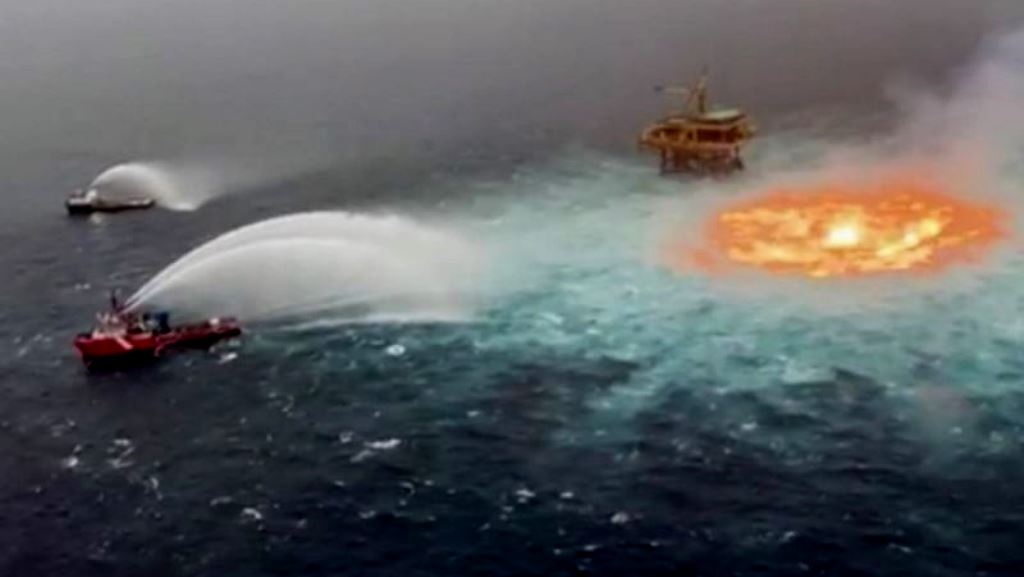 DP.- Un incendio a 400 metros de la plataforma Ku-Charly, que pertenece al Activo Integral de Producción Ku Maloob Zaap y ubicado en el Golfo de México –Sonda de Campeche, se mantiene fuera de control desde hace más de ocho horas.