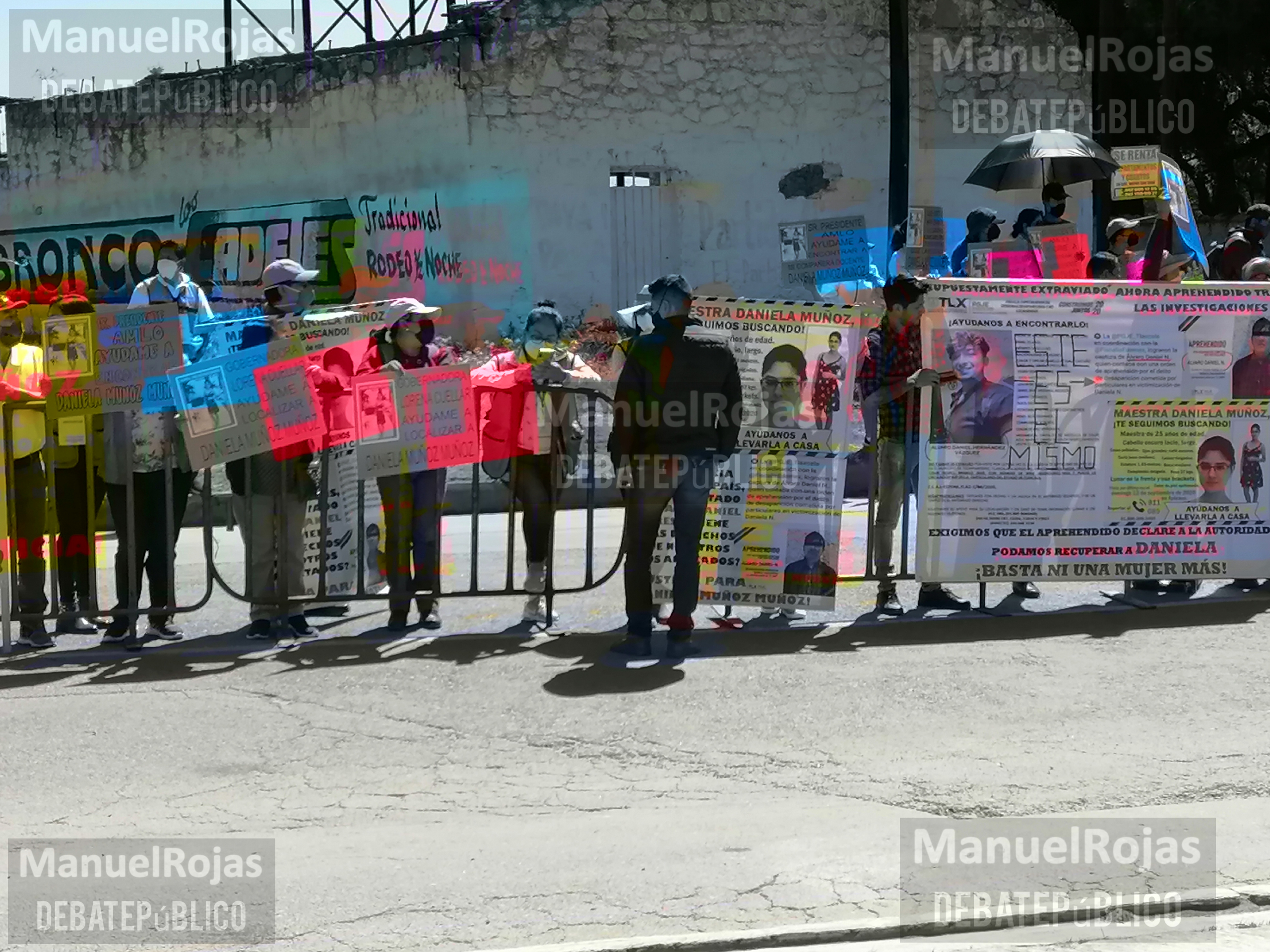 A las 11:15 llegó la Gobernadora Electa de Tlaxcala, Lorena Cuellar Cisneros y fue recibida por familiares y amigos de Daniela Muñoz quien está desaparecida desde septiembre de 2020 y le pidieron su intervención para que haya justicia en este caso, ya que el posible responsable fue detenido y se ha negado a revelar el paradero de la joven.