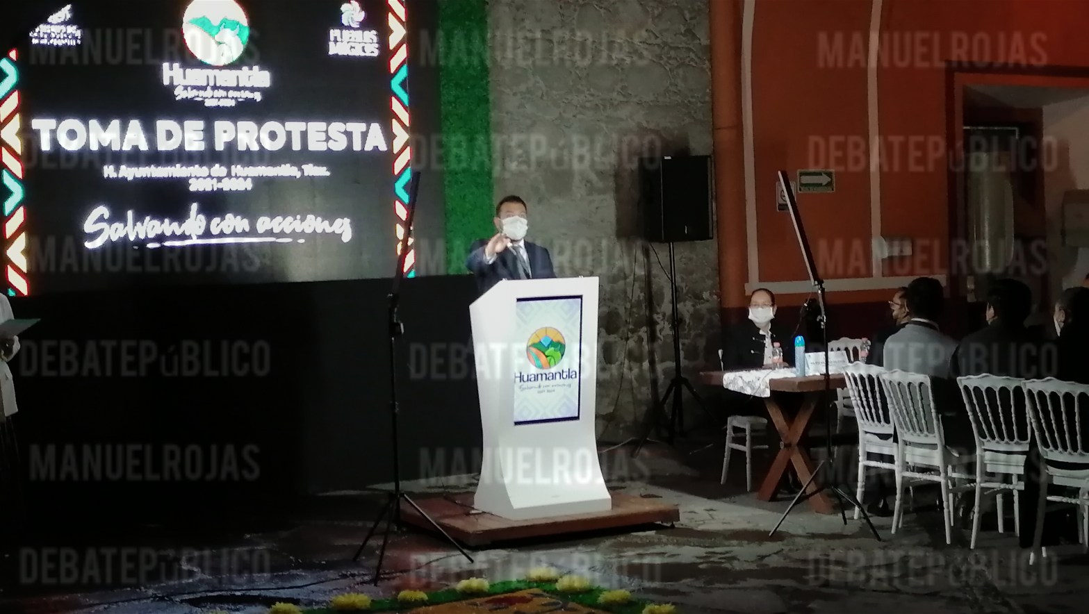 De esta forma quedó instalado en nuevo Ayuntamiento del Municipio de Huamantleca para el periodo 2021 – 2024. Para dar paso al mensaje del Presidente Municipal de Huamantla, quién agradecio a todos los médicos y a quellas personas que han luchado contra el covid-19, y pidió un minuto de silencio por todos aquellos que se han ido debido a esta enfermedad.