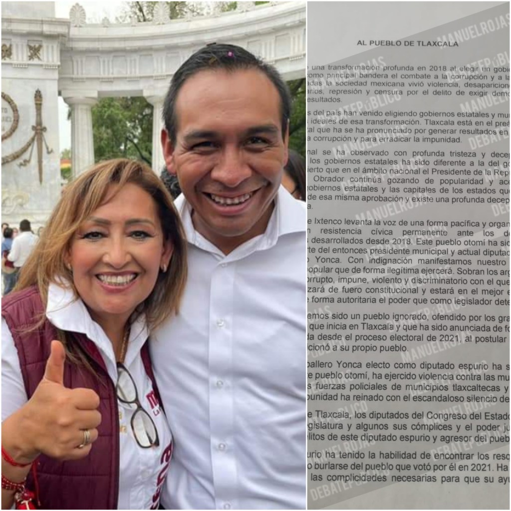 Puntualizan en el documento, que la gobernadora de Tlaxcala, Lorena Cuéllar Cisneros, y los diputados del congreso del Estado que serán compañeros de Caballero Yonca así como el poder judicial, han sido omisos ante los delitos de este diputado espurio y agresor del pueblo de Ixtenco.
