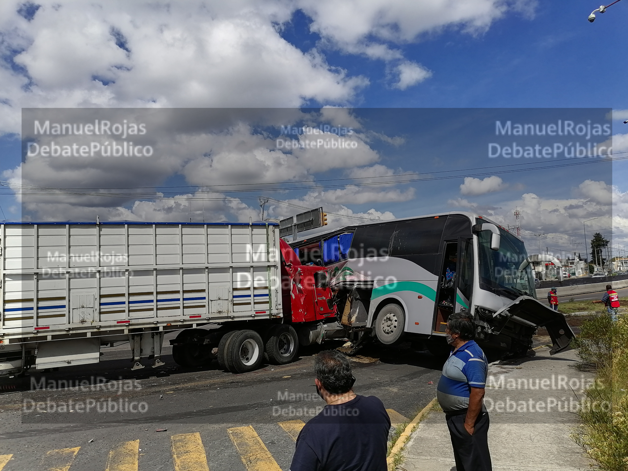 De acuerdo a las versiones recabadas por este reportero, el tractocamión de la marca frighliner, color rojo, con doble remolque de redilas, placas de circulación 41-UD1S, circulaba con dirección al oriente, mientras que el autobús con placas de circulación 19-RB-3D, se dirigía con rumbo a la ciudad de Huamantla, y según el conductor, sólo vio que el tráiler se había saltado el camellón y de repente sintió el fuerte impacto.