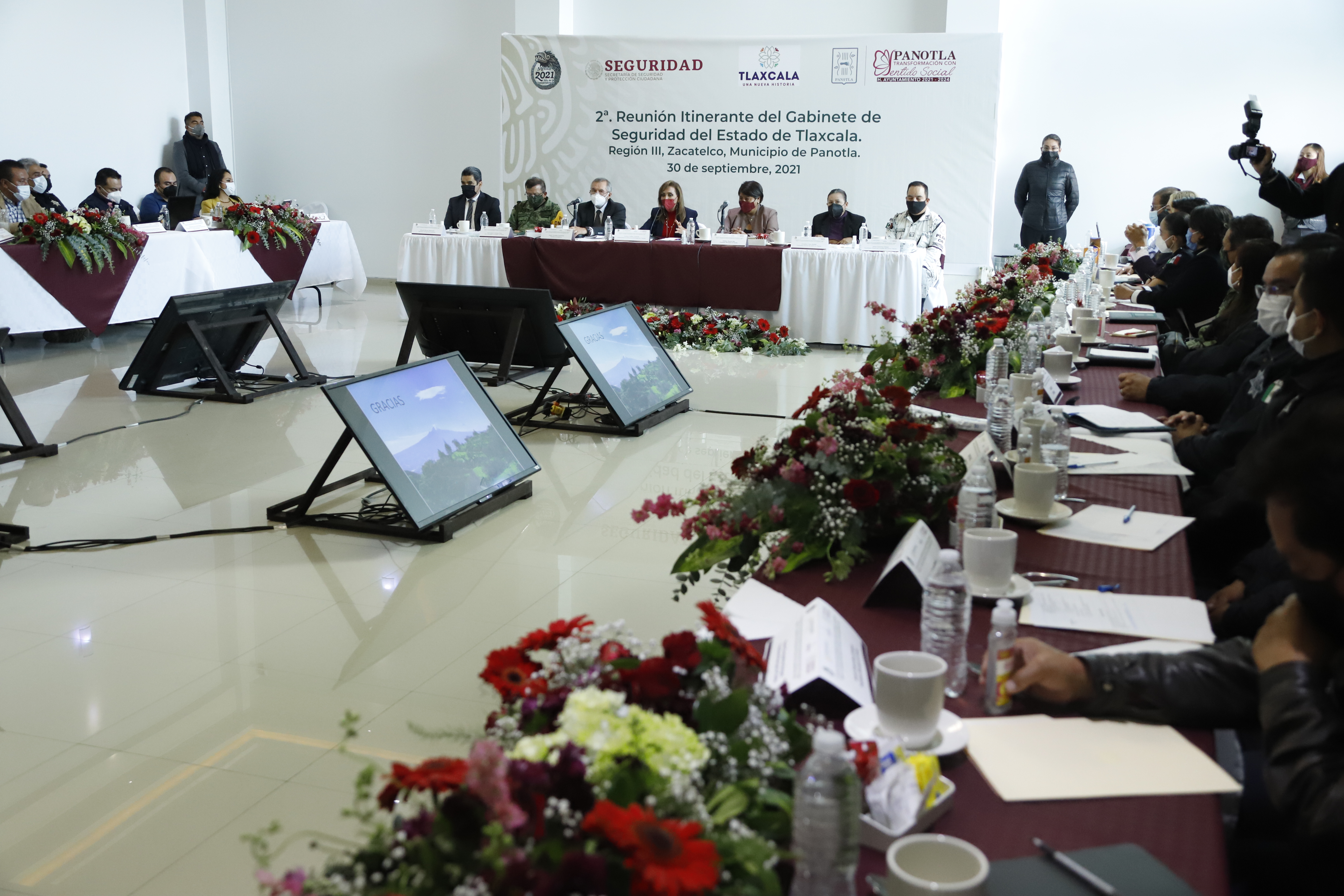 En la mesa de trabajo estuvieron presentes el secretario de Gobierno, Sergio González Hernández; la presidenta municipal de Panotla, Felicitas Vázquez Islas; el Comandante de la 23 Zona Militar, José Joaquín Jiménez Cueto; en representación de la coordinación estatal de la Guardia Nacional, Salvador Bárcena López; el secretario de Seguridad Ciudadana, Alfredo Álvarez Valenzuela y la procuradora General de Justicia, Ernestina Carro Roldán, entre otras autoridades.