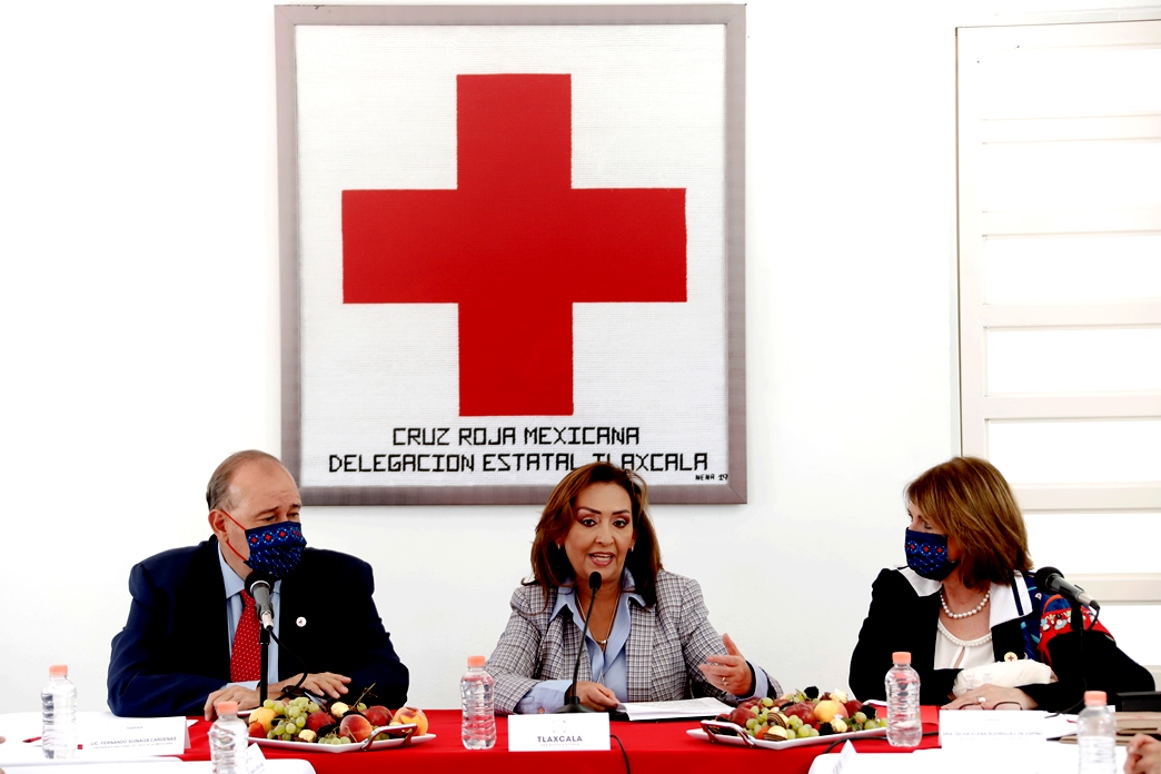 La gobernadora Lorena Cuéllar Cisneros visitó la Delegación Estatal de la Cruz Roja, a fin de conocer sus necesidades y buscar los mecanismos urgentes para mejorar la atención a la población en caso de requerir de los servicios que brinda la institución en Tlaxcala.