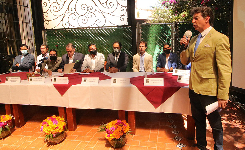 DP.- Este medio día en el restaurante «Casa Taurina» de la Familia Rodríguez, en Tlaxcala, Capital, se dieron cita los medios de comunicación para la presentación oficial de los carteles correspondientes a la celebración de Todos Santos en la Plaza Jorge Aguilar «El Ranchero».