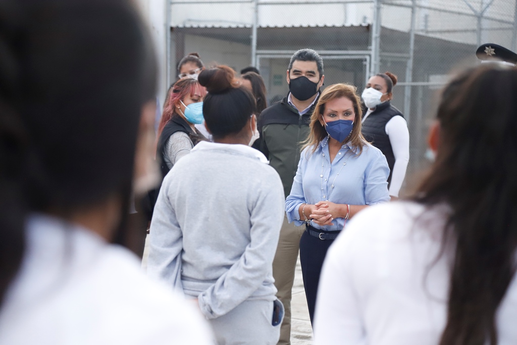 La gobernadora Lorena Cuéllar Cisneros recorrió las instalaciones del Anexo Femenil del Centro Regional de Reinserción Social (Cereso), ubicado en el municipio de Apizaco, que alberga a 88 internas de Tlaxcala y otras entidades.