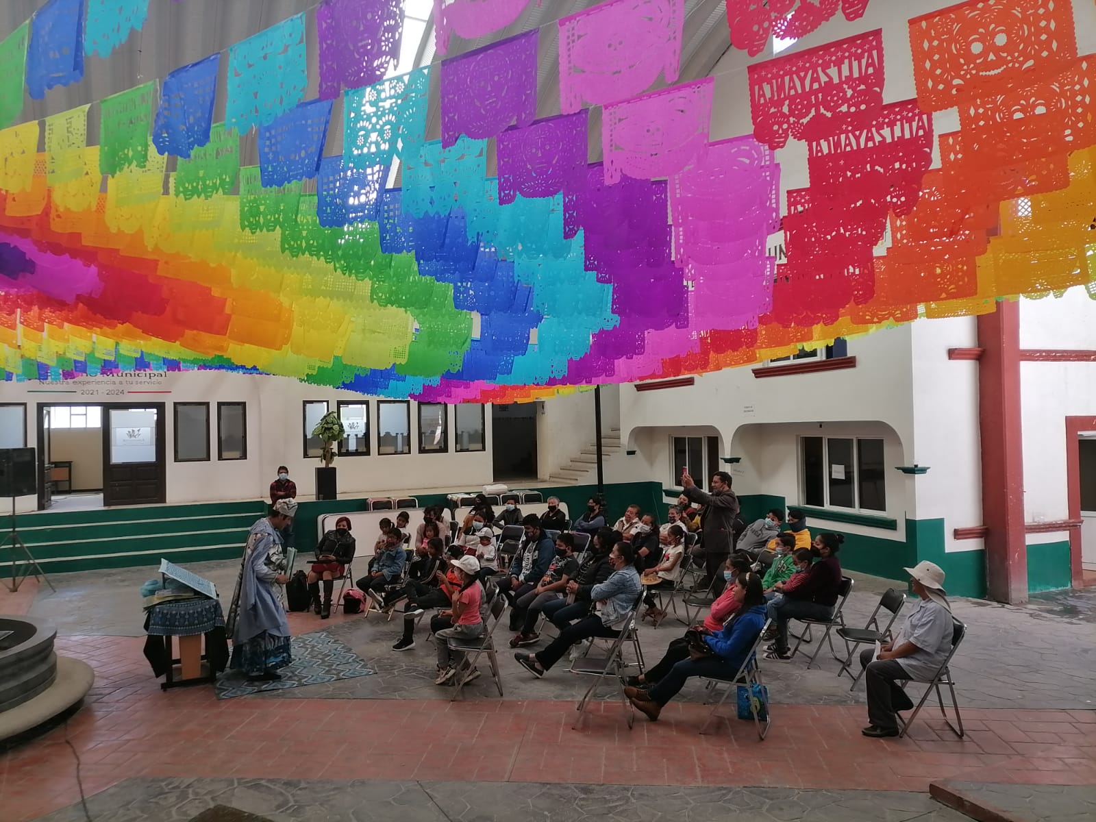 ManuelRojas.- En las instalaciones de la Presidencia Municipal de Atltzayanca, se llevó a cabo el evento de narración textil: Agua Cuentos para Fluir y Soñar, por «Lenin Hijo de la Luna», este sábado 30 de octubre. Posteriormente los integrantes de la administración municipal realizaron una ofrenda para honrar la memoria de quienes han perdido la vida durante la emergencia sanitaria.