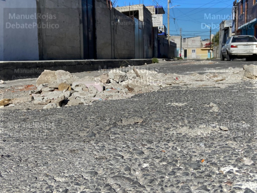 De acuerdo a los vecinos, el pavimento de está calle se está hundiendo, por lo que en algunos de los baches han colocado material de escombro, incluso refieren que posiblemente haya algunas fugas de agua, ya que a pesar del relleno los hoyancos siguen creciendo.