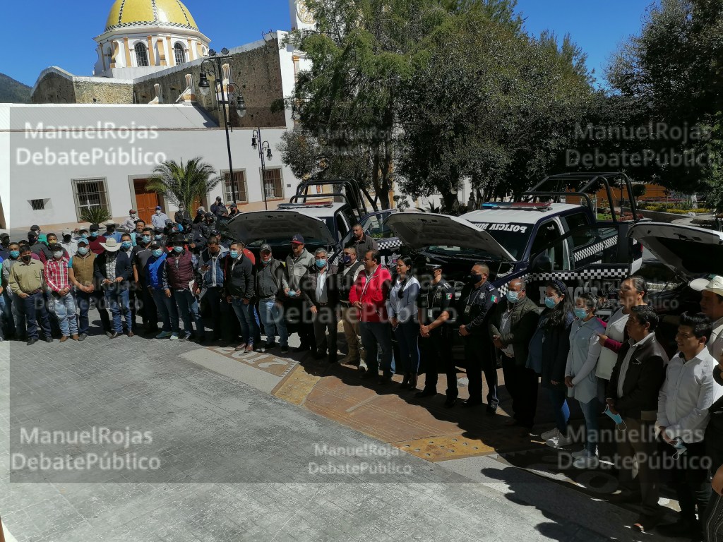 ManuelRojas.- Elementos de la Dirección de Seguridad Pública Municipal, recibieron de manos del presidente municipal de Atltzayanca, Gustavo Parada Matamoros, la dotación de uniformes, con lo que se dignifica su labor como parte de la seguridad municipal, además de que se identifican con la población, además de tres unidades vehículares.