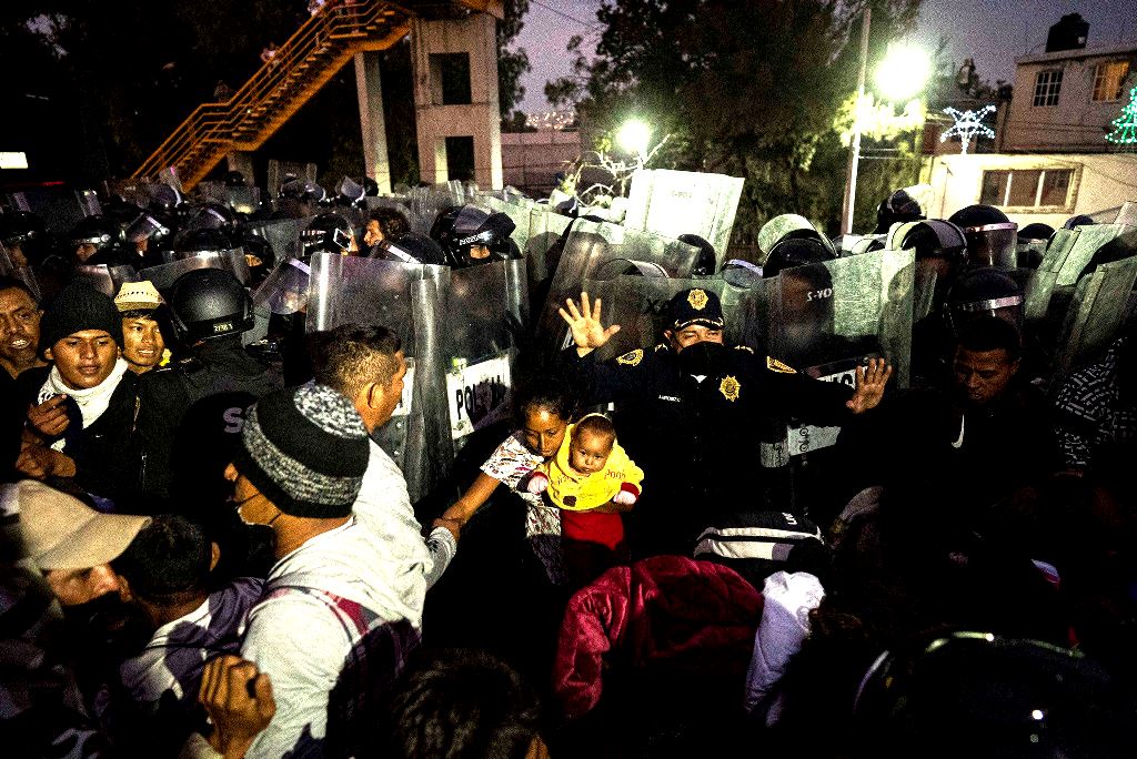 Los policías capitalinos les impidieron el paso a los migrantes que iban rumbo a la Basílica de Guadalupe, ubicada en la alcaldía Gustavo A. Madero.