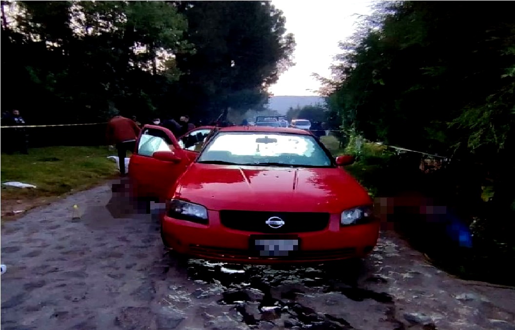 Este lunes, vecinos reportaron el hallazgo de los cuerpos junto con un auto Nissan Sentra rojo, matrícula NMM3113, que tenía impactos de bala.