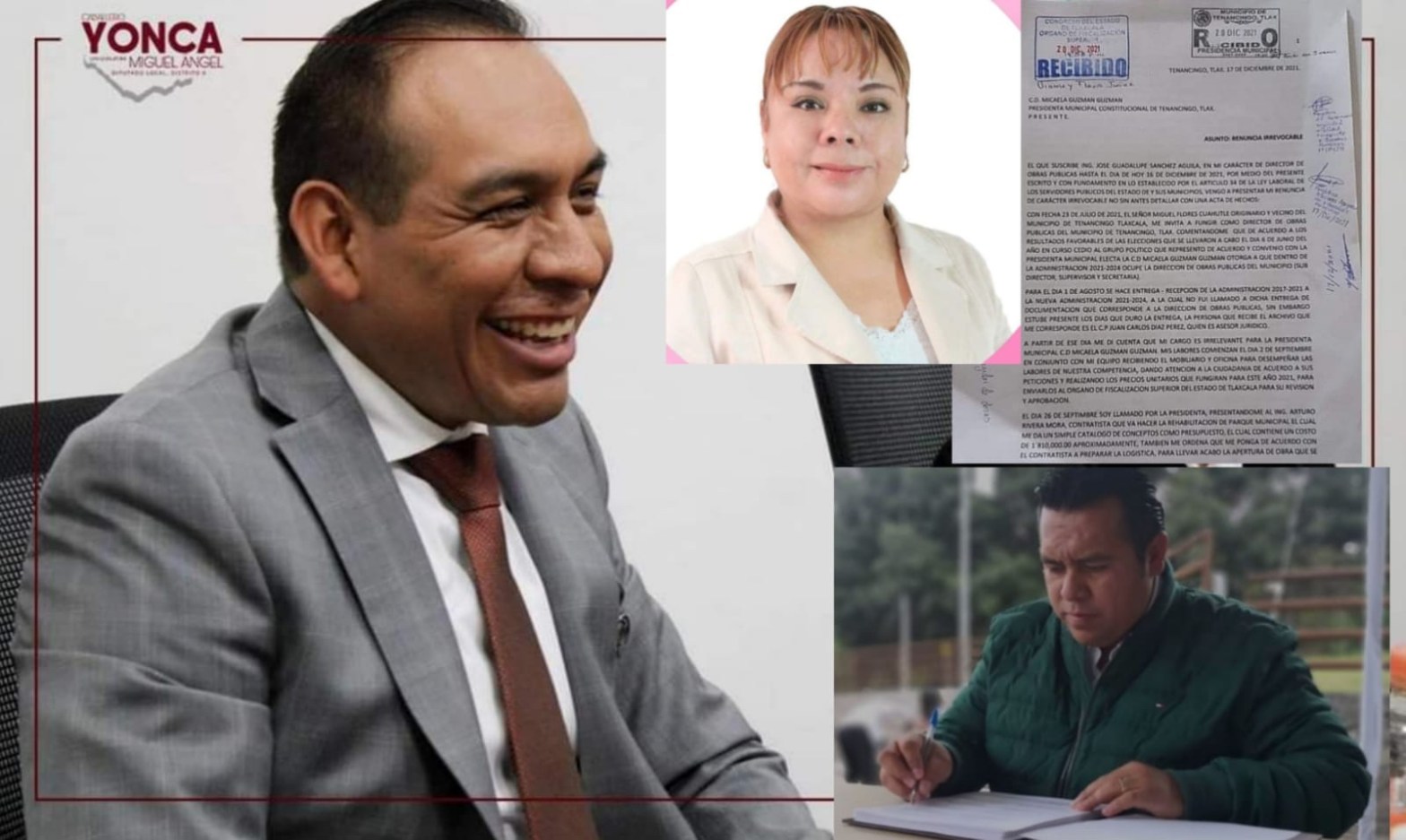 Ante esto el Exdirector de Obras, prefirió renunciar antes que «firmar un contrato de adjudicación de obras con personal del diputado Caballero Yonca y Arturo Rivera Mora, ex presidente de Tzompantepec.