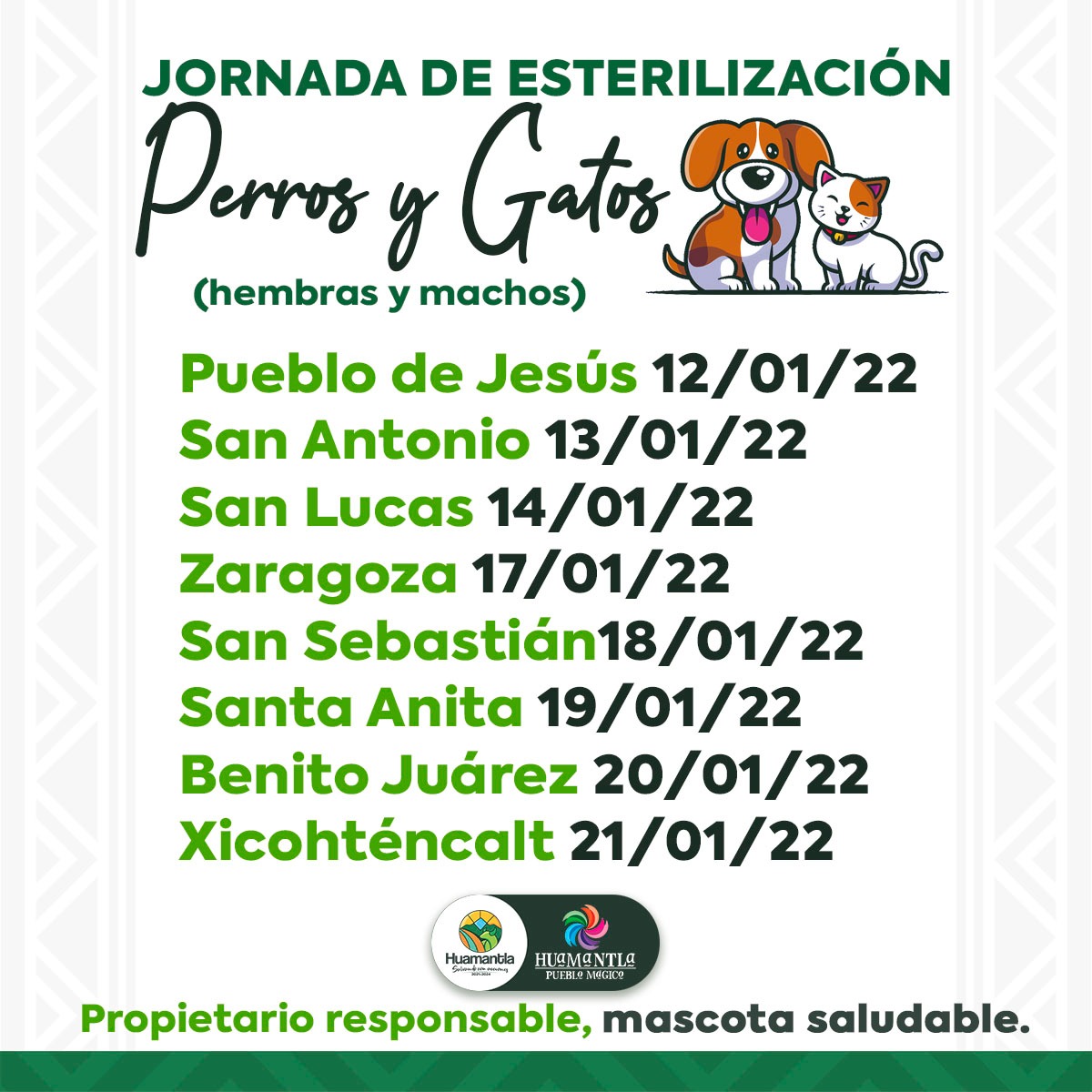 DebatePúblico.- Para contribuir al control de la población de mascotas, evitando embarazos no planeados que pueden terminar en casos de abandono, el H. Ayuntamiento de Huamantla que preside Salvador Santos Cedillo, en coordinación con la Secretaría de Salud (SESA) llevarán a cabo una Jornada de Esterilización de perros y gatos en las diferentes comunidades del municipio.