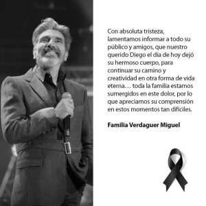 “Con absoluta tristeza lamentamos informar a todo su público y amigos, que nuestro querido Diego el día de hoy dejó su hermoso cuerpo, para continuar su camino y creatividad en otra forma de vida eterna…», se informó en un comunicado.