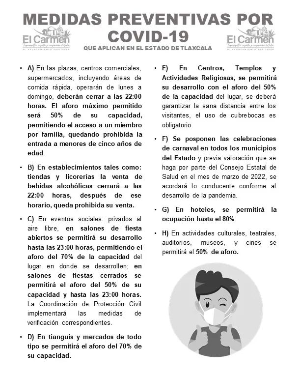 Hasta este momento El Carmen Tequexquitla registra 126 casos confirmados, por ellos la Presidente Municipal de Tequexquitla, exhortó a la población a seguir con el uso de cubrebocas, mantener las medidas preventivas y comunicarse de manera inmediata a la línea de emergencia 911 en caso de presentar síntomas de Covid-19.