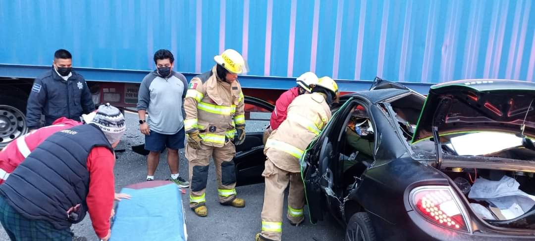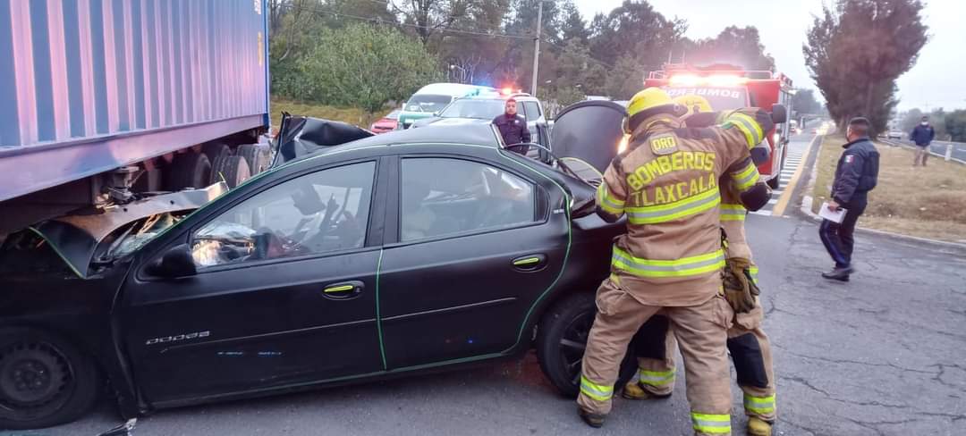 Personal del Heroico Cuerpo de Bomberos se encargó de auxiliar a la persona que se encontraba prensada en su vehículo sobre autopista Tlaxcala-San Martín, donde procedieron a utilizar el equipo libra para abrir la puerta delantera e izquierda del lado del conductor, para poder liberarlo y ser canalizado al hospital más cercano para su atención médica.