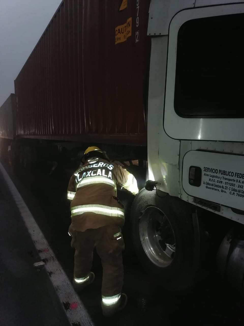 Además, se encargaron del aislamiento del combustible derramado sobre la cinta asfáltica derivado por el impacto de dos tractocamiones sobre la carretera México – Veracruz, en la localidad de Santa Bárbara Acuicuizcatepec, con la finalidad de eliminar fuentes de ignición que pudieran representar un riesgo para los conductores que transitan por el lugar.