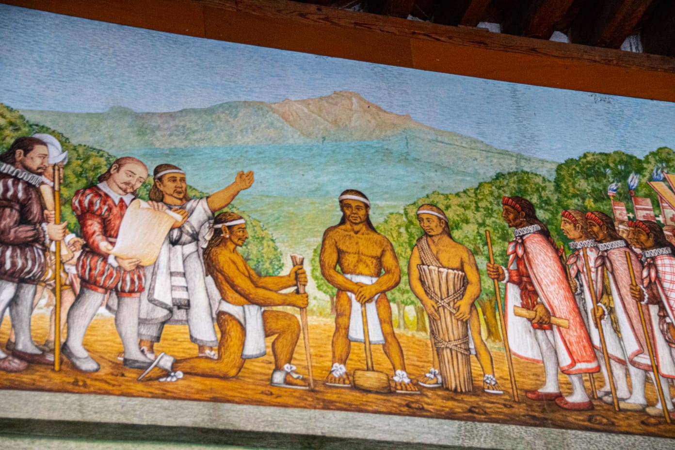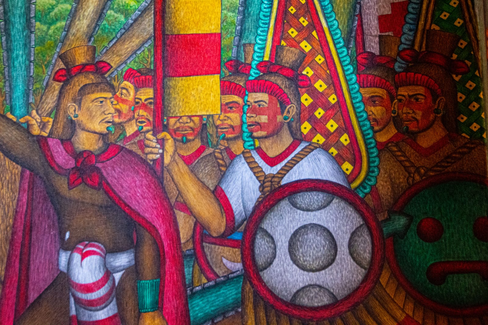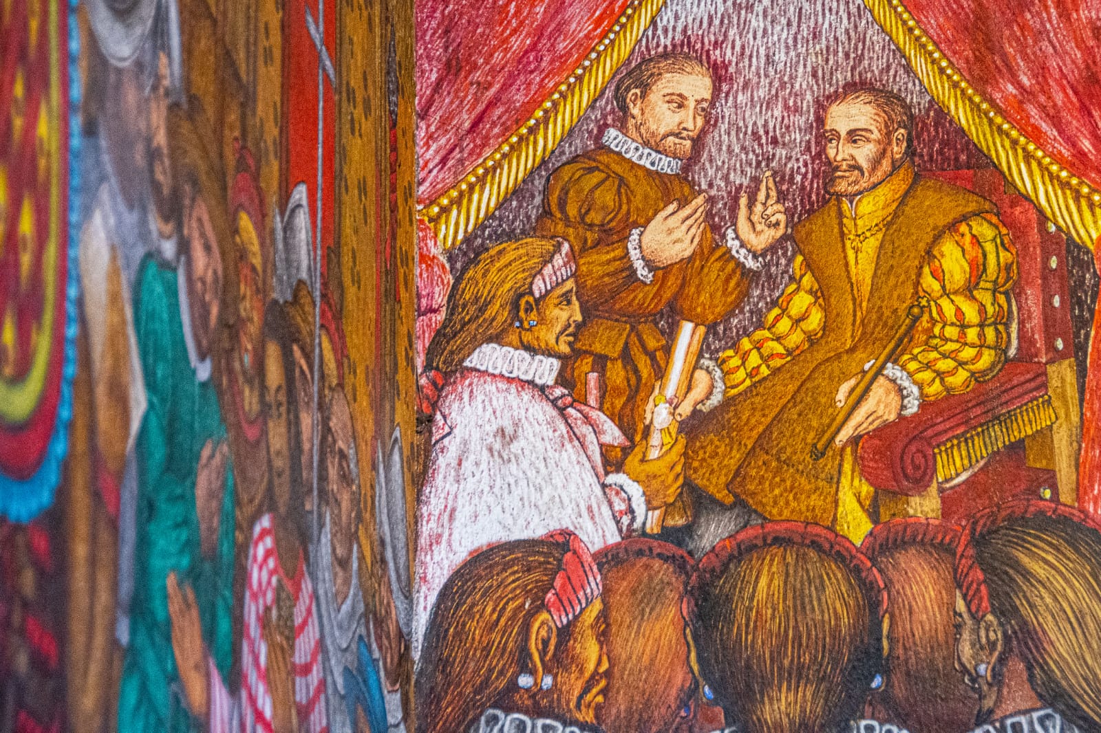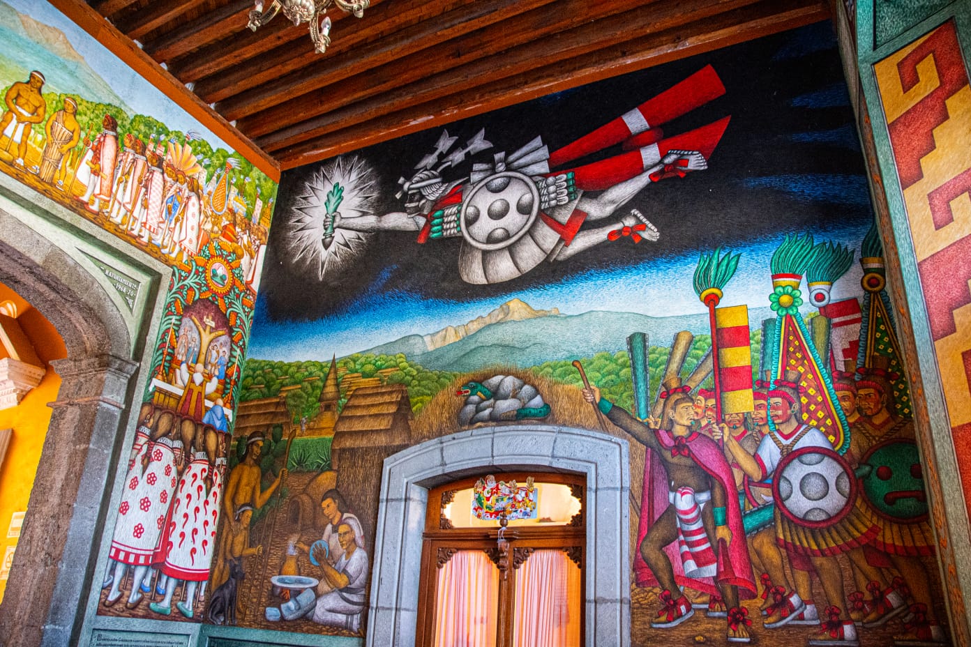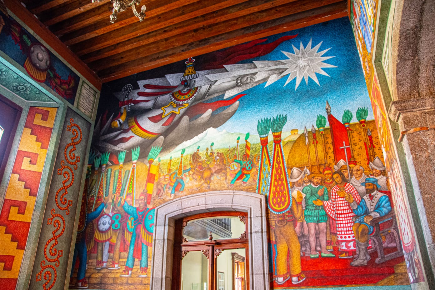 El muralista, se documentó en el códice de Huamantla y en los cinco lienzos recuperados de la fundación de la ciudad de 1984, con la cédula real de Carlos V para contar con los cimientos del mural.