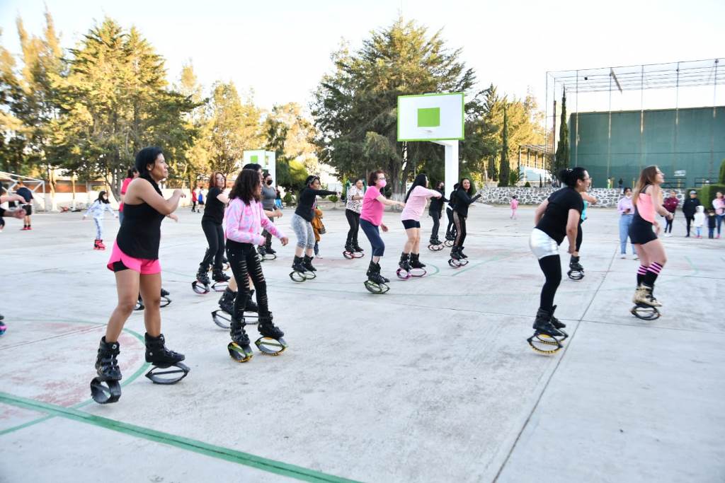 Otro grupo de mujeres, tomaron una clase especial de “Jumple”, que es un entrenamiento basado en ejercicios de rebote utilizando unas botas conocidas como Jumpers; ahí, la instructora refirió que este ejercicio ayuda a reducir la grasa corporal, a fortalecer los músculos, además de que mejora el equilibrio.