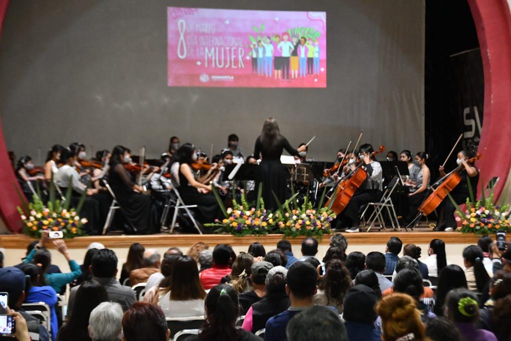 DebatePúblico.- Dentro del marco de la conmemoración del Día Internacional de la Mujer, el gobierno municipal de Huamantla, a través de la Coordinación de Turismo y Cultura presentaron el concierto de la “Camerata Femenil Matlalcueyetl”, que destaca por ser una de las orquestas en todo el país que está integrada únicamente por mujeres.