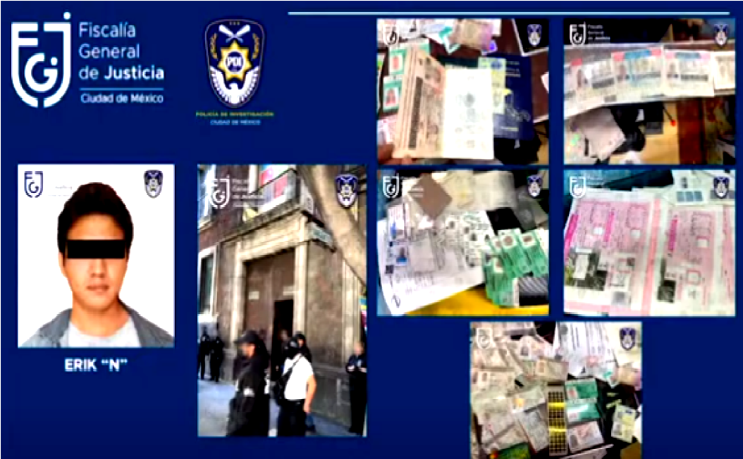 En dicho inmueble se detuvo a Erik Alexander «N», de 23 años, y se encuentra sujeto a investigación, por su probable participación en el delito falsificación.