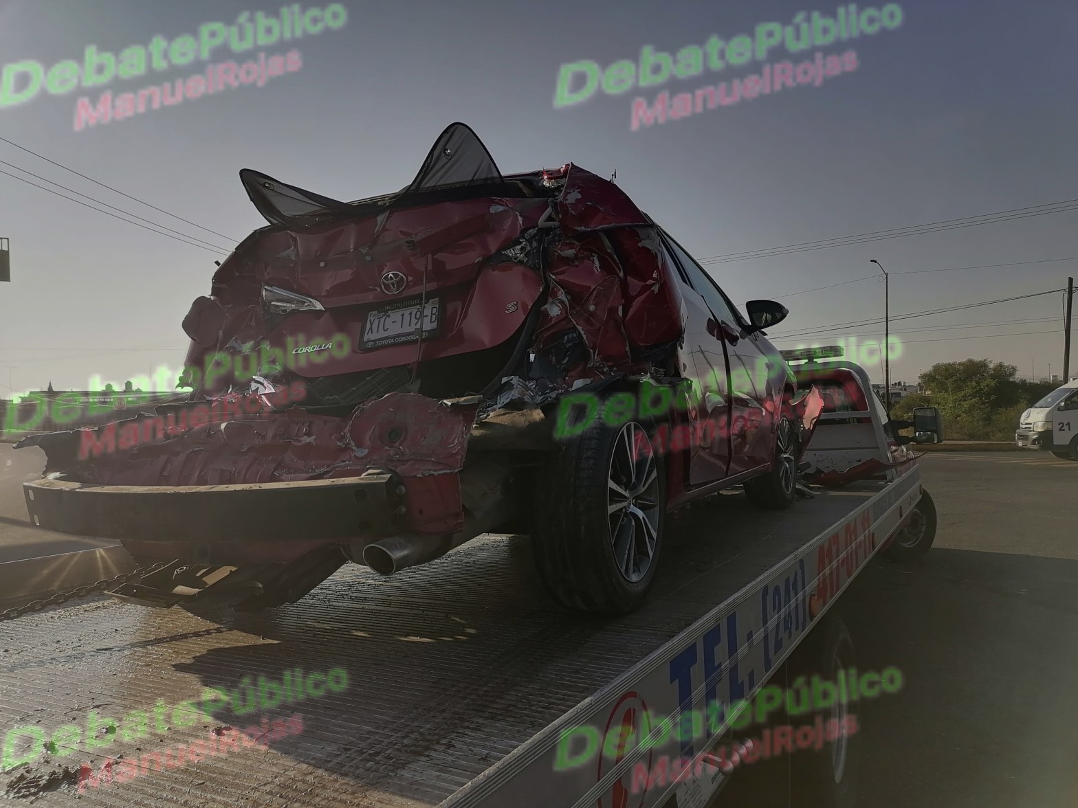 Fue alrededor de las 7:20 horas, cuando ocurrió un choque por alcance en el que se vieron involucradas cuatro unidades, pero el que resultó con más daños fue un auto compacto marca Toyota, modelo Corolla, color rojo, con placas de circulación XTC119B.