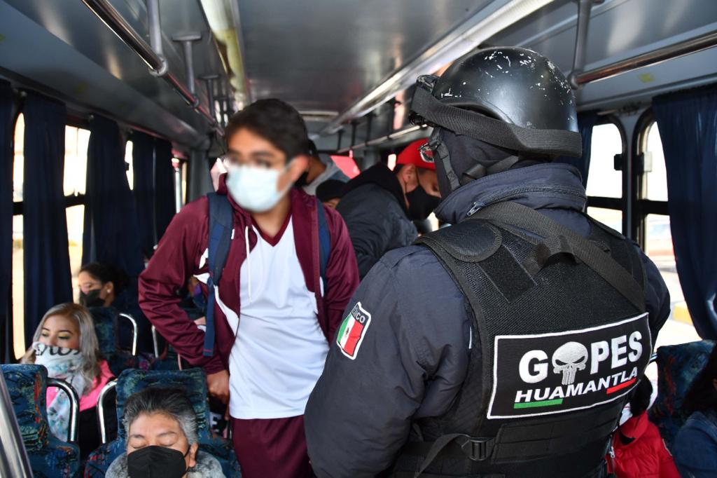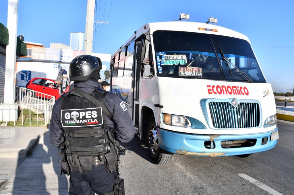 DebatePúblico.- Como parte de los operativos de prevención y vigilancia que realiza la Dirección de Seguridad Pública, Tránsito y Protección Civil de Huamantla, se lleva a cabo en las entradas y salidas del municipio el operativo “Transporte Seguro”, que busca dar acompañamiento a usuarios y transportistas con revisiones a las unidades de transporte.