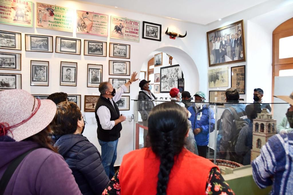 En este recorrido por el Museo Taurino, participaron adultos mayores de las comunidades de Nuevo Centro de Población San José Teacalco, Nuevo Centro de Población José María Morelos, Lázaro Cárdenas, Santa Anita, y de la Colonia Centro.