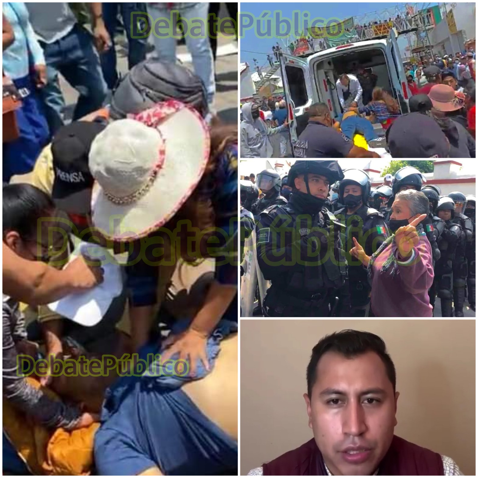 Los hechos ocurrieron alrededor del mediodía de este domingo, cuando un hombre fue herido por arma de fuego, además de una mujer que resultó atropellada, después de que la reunión entre el Presidente Municipal y un grupo de pobladores se saliera de control, al intentar un grupo de personas, recuperar las instalaciones de la Presidencia Municipal.
