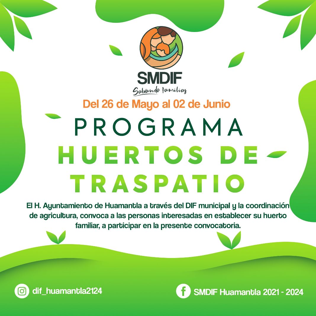 DebatePúblico.- Con el propósito de fortalecer la economía a través de la producción de alimentos para la familia, el H. Ayuntamiento de Huamantla, a través del Sistema Municipal para el Desarrollo Integral de la Familia (SMDIF), y la Coordinación de Agricultura, convocan a las personas interesadas en establecer su huerto familiar, a participar en el Programa “Huertos de Traspatio”.