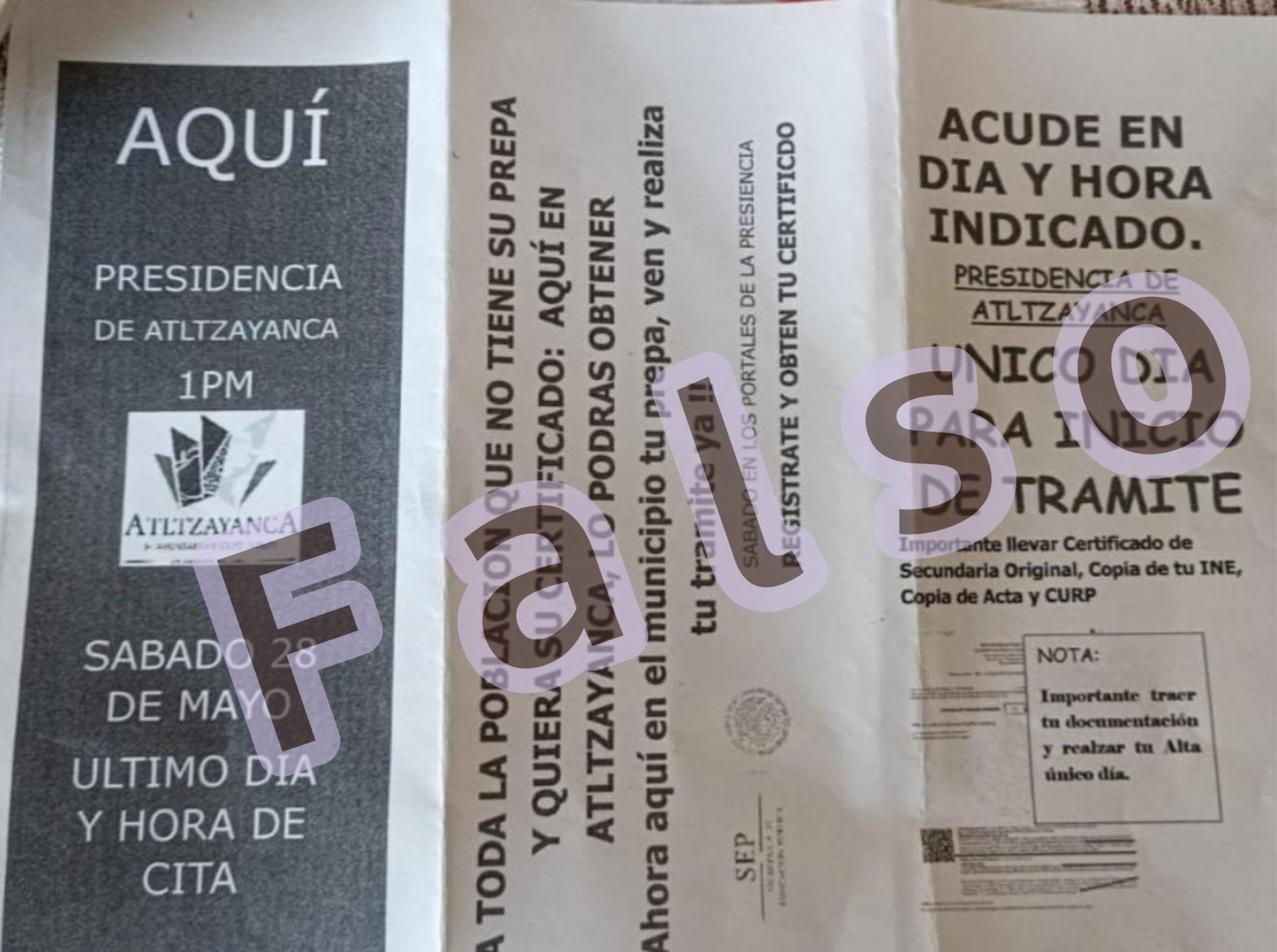 ManuelRojas.- El Gobierno Municipal de Atltzayanca que preside Gustavo Parada Matamoros, informó que es falso que su administración este realizando un programa para tramitar certificados escolares, como se ha dado a conocer a través de algunos «panfletos».