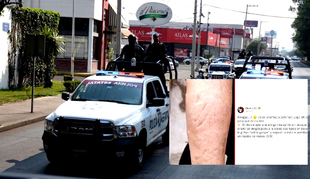 DP.- Una mujer fue rociada con ácido sulfúrico por dos sujetos cuando salía de realizar trámites en las oficinas del Sistema de Administración Tributaria (SAT) en la zona de Angelópolis, en la capital del estado.