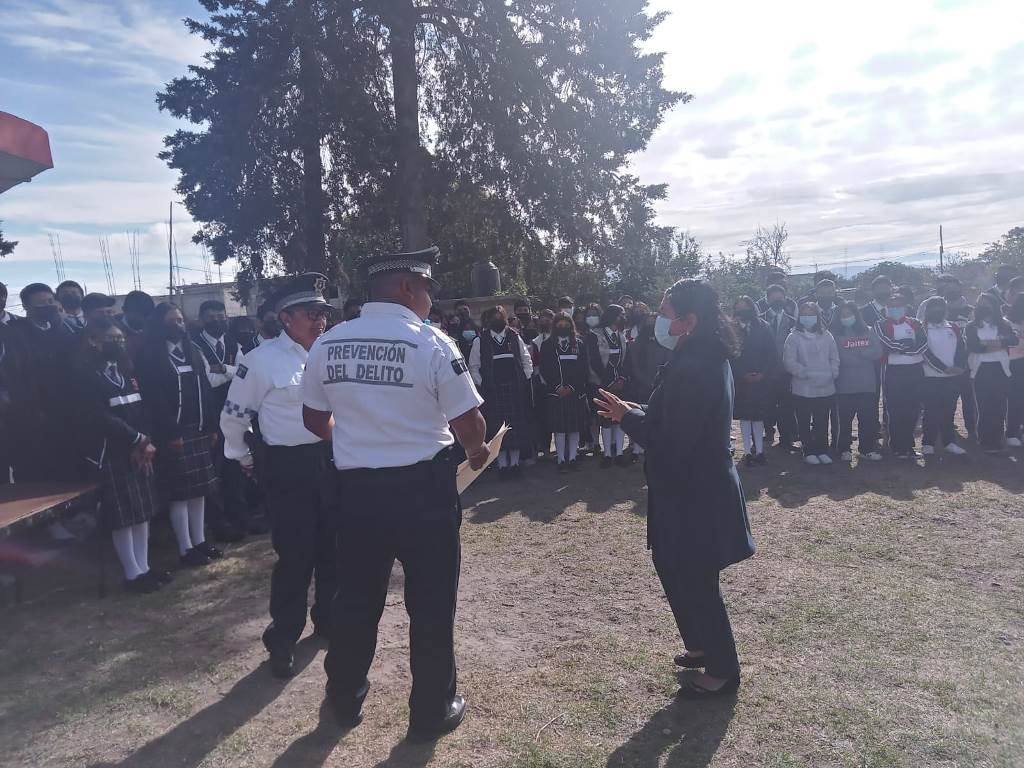 En el acto, elementos adscritos a la Policía Municipal de Huamantla, brindaron una plática a las y los estudiantes donde se les dio a conocer los diferentes tipos de violencia que se dan en el noviazgo, cómo identificarlos a tiempo y evitar abusos mayores.