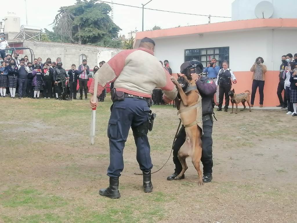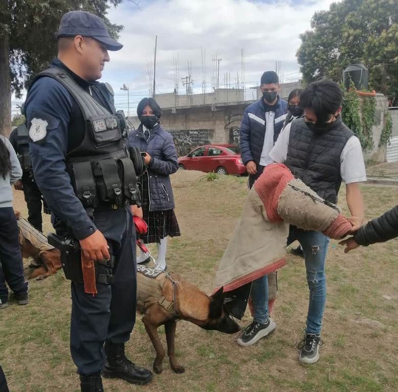 Luego, el grupo de operaciones K9, dio una exhibición con los perros entrenados para realizar labores de rescate y búsqueda de estupefacientes; ahí, los estudiantes pudieron interactuar con los binomios caninos.