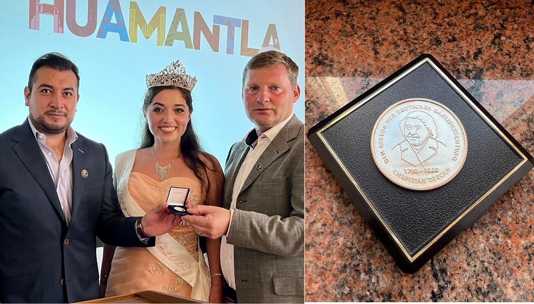 DebatePúblico.- El Presidente Municipal de Huamantla, Juan Salvador Santos Cedillo recibió por parte de la Sociedad Alemana de la Dalia, la medalla conmemorativa “Christian Deegen”.
