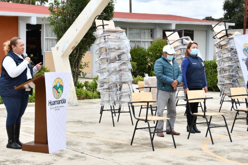 DebatePúblico.- Con el propósito de impulsar el desarrollo académico de las y los estudiantes de la Telesecundaria Malintzi de la comunidad de El Carmen Xalpatlahuaya, la presidenta honorífica del Sistema Municipal para el Desarrollo Integral de la Familia (SMDIF) Huamantla, Karla Guadalupe Menendez Cedillo, entregó mobiliario escolar en beneficio de la comunidad estudiantil.