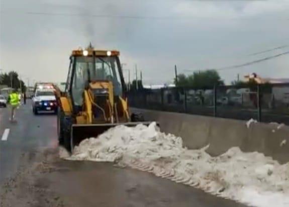 🚨 Con el apoyo de retroexcavadoras se retiró escombro y granizo de las vías de comunicación por parte de la Dirección de Obras del municipio.