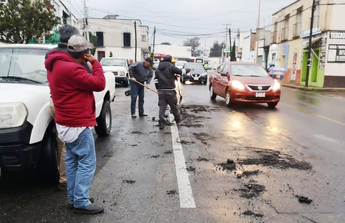 Aquí, personal de la Dirección de Seguridad Pública de Huamantla y Tránsito municipal, abanderaron en las entradas y salidas del municipio, recomendando a los automovilistas manejar con precaución debido a las condiciones de la cinta asfáltica.