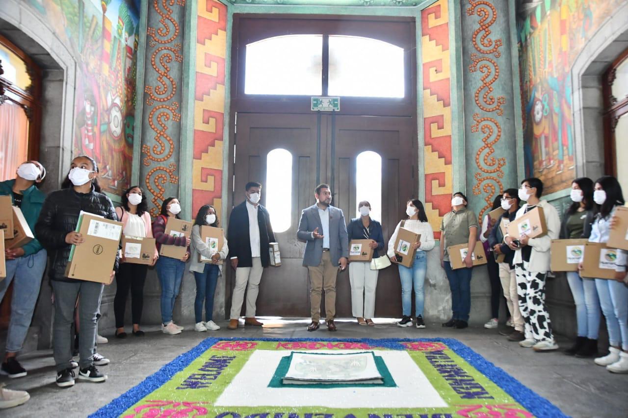 DebatePúblico.- Con el propósito de impulsar el desarrollo académico de las y los jóvenes huamantlecos, el presidente municipal, Salvador Santos Cedillo, hizo entrega de 20 equipos de cómputo a los mejores promedios de Huamantla, como parte del programa “Salvando la Educación”.